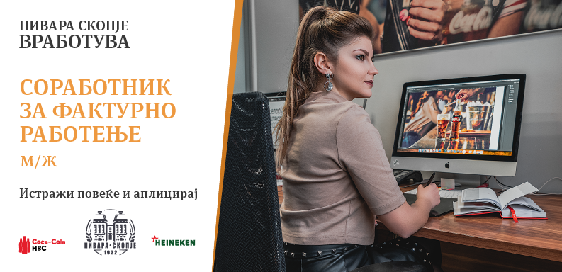 Пивара Скопје АД една од водечките компании во Северна Македонија со 100 години традиција, богато портфолио на производи и број еден позиција на пазарот ви нуди вистински предизвик. Пивара Скопје АД е дел од големите интернационални семејства на Coca-Cola HBC и Heineken.