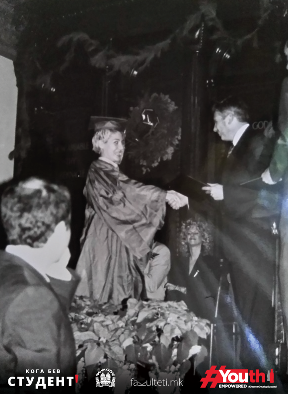 Во првата година од студиите кога се подготовував за првата филмска вежба, не бев никако во состојба да го завршам сценариото за краткиот филм што го спремав. Тогаш проф.Фрумин ми кажа: „Теона, ако не го завршиш сценариото во следните два дена, твоето место не е тука“. Тој викенд седнав и го напишав своето прво вистиско сценарио и оттогаш не запрeв – вели нашата режисерка во рубриката „Кога бев студент“, што Факултети.мк ја реализира заедно со „Пивара Скопје“